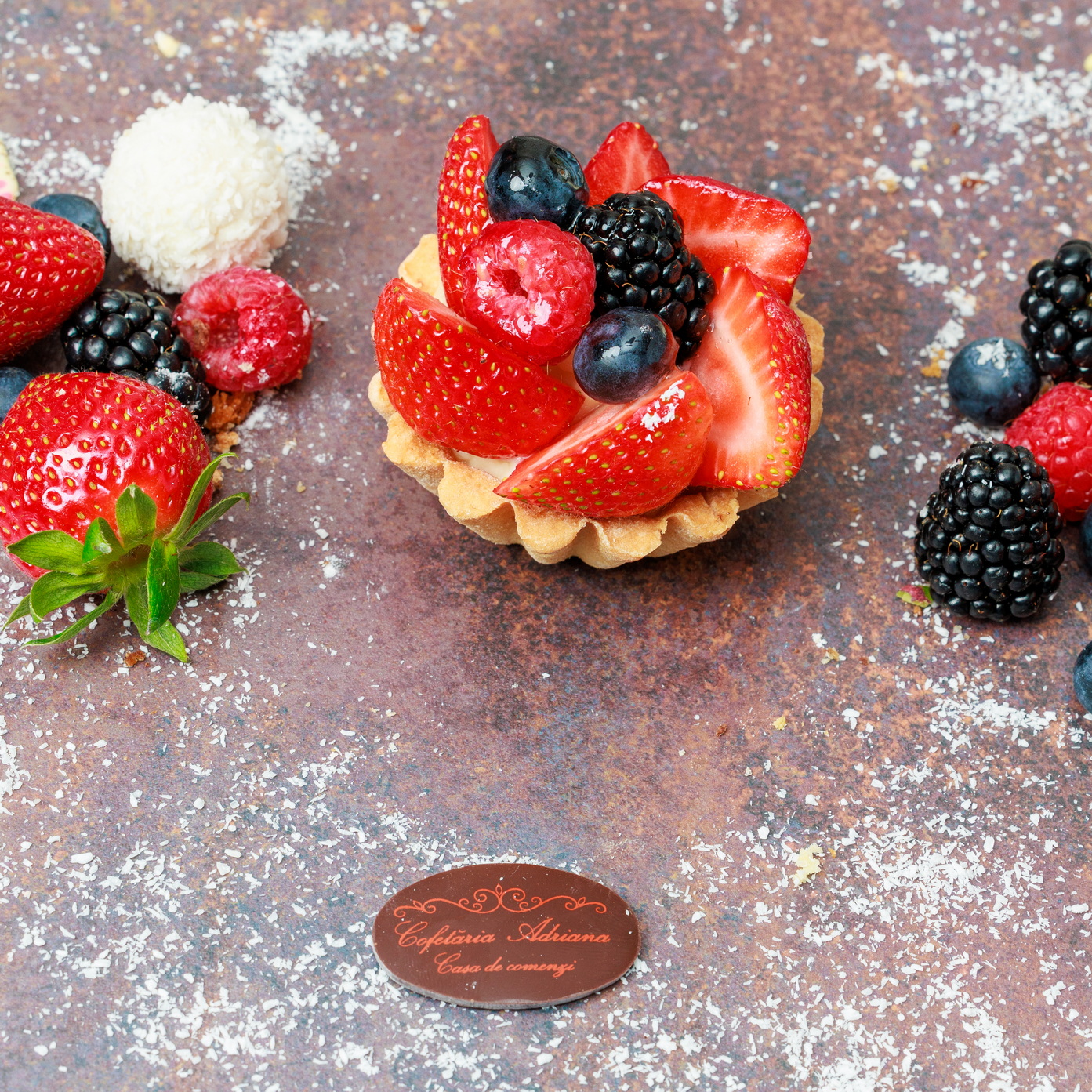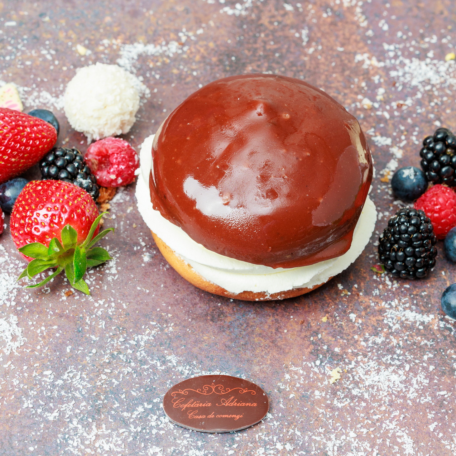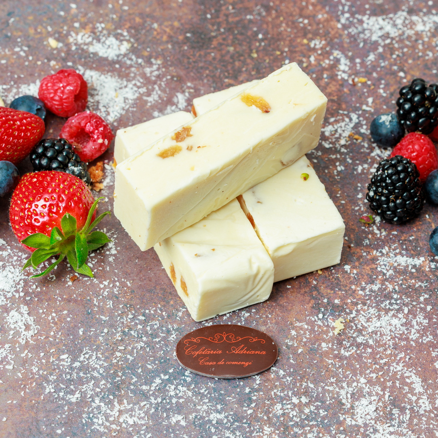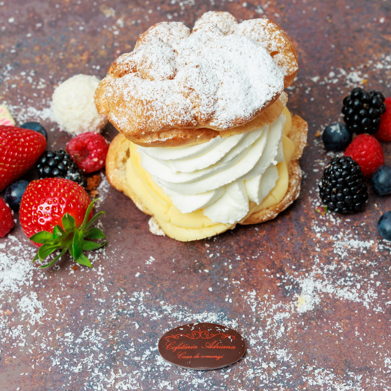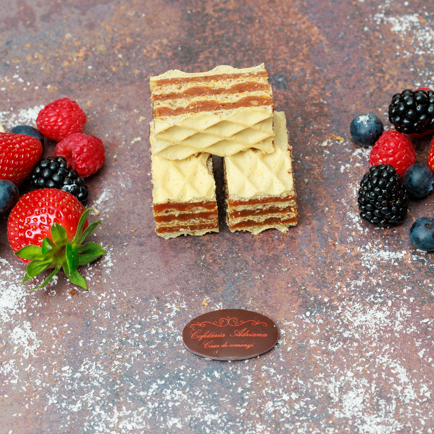 - oua, zahar, faina, frisca lichida, unt, mascarpone, razatura lamaie, zeama lamaie, gelatina, fulgi de cocos, gem de caise (E160)