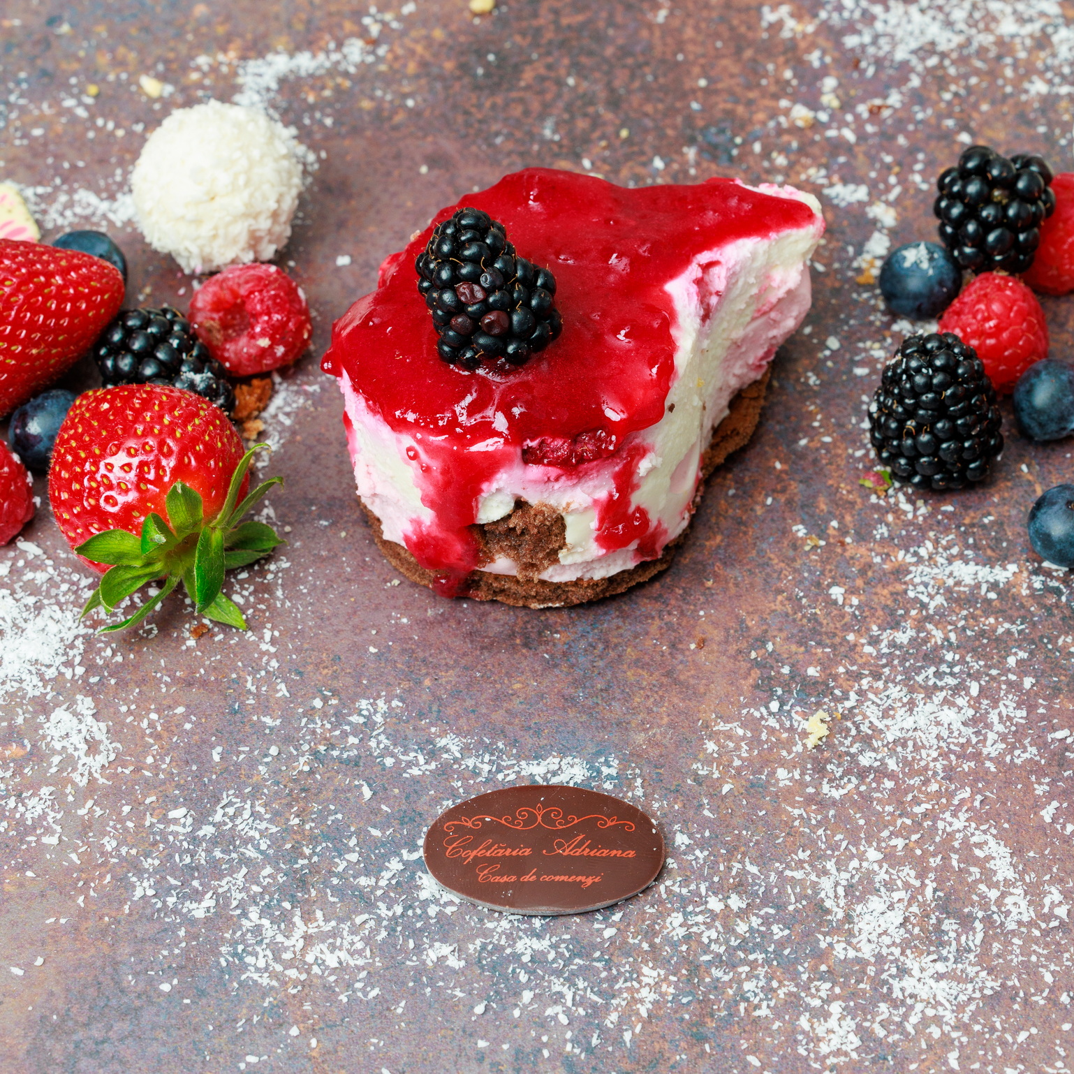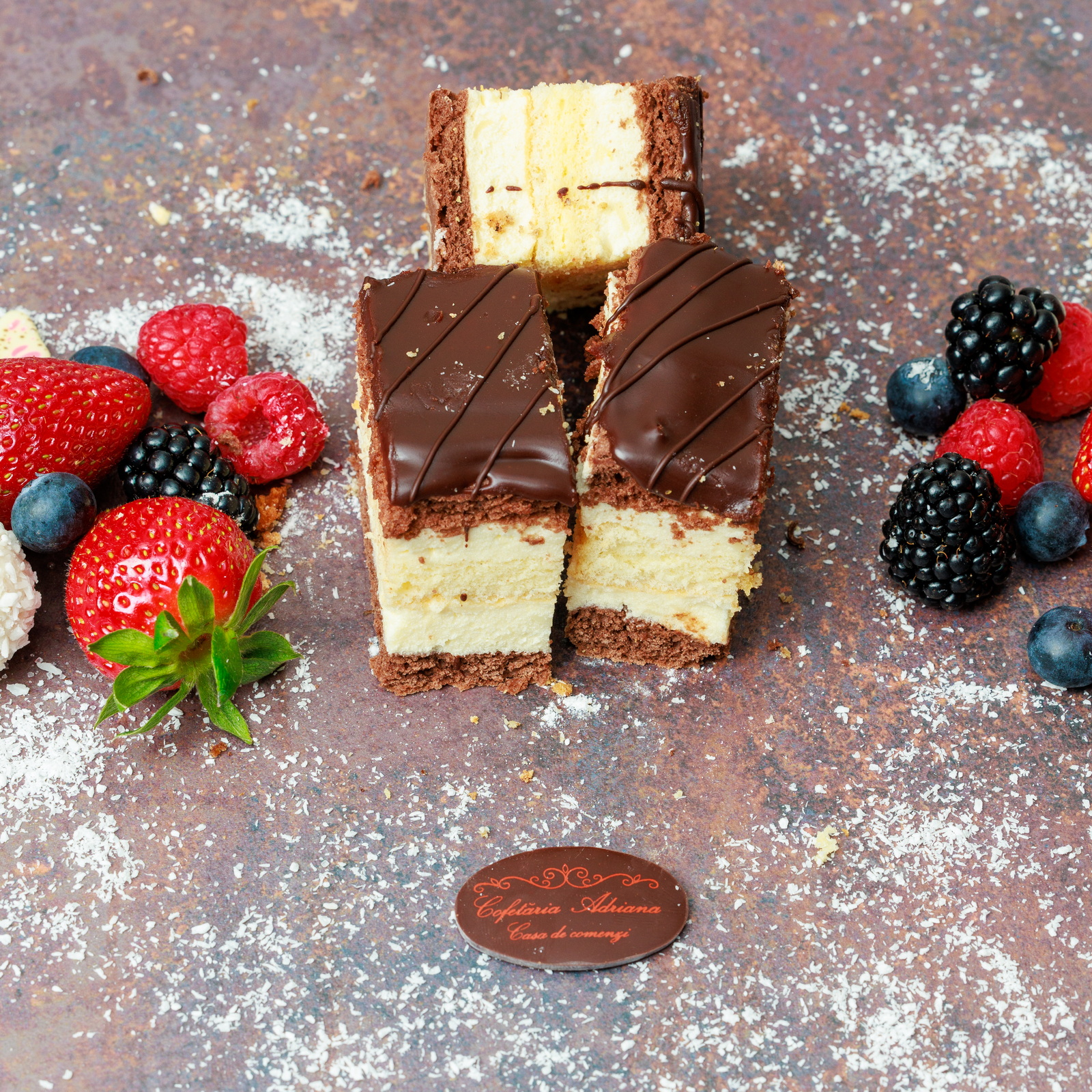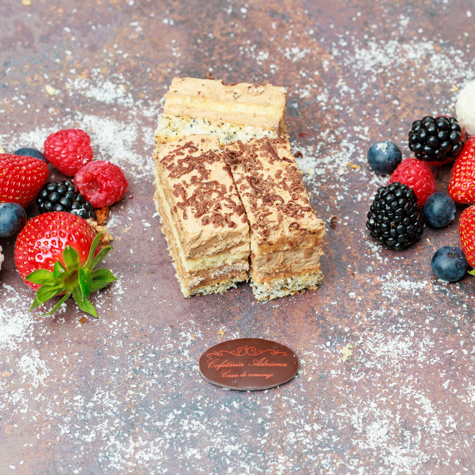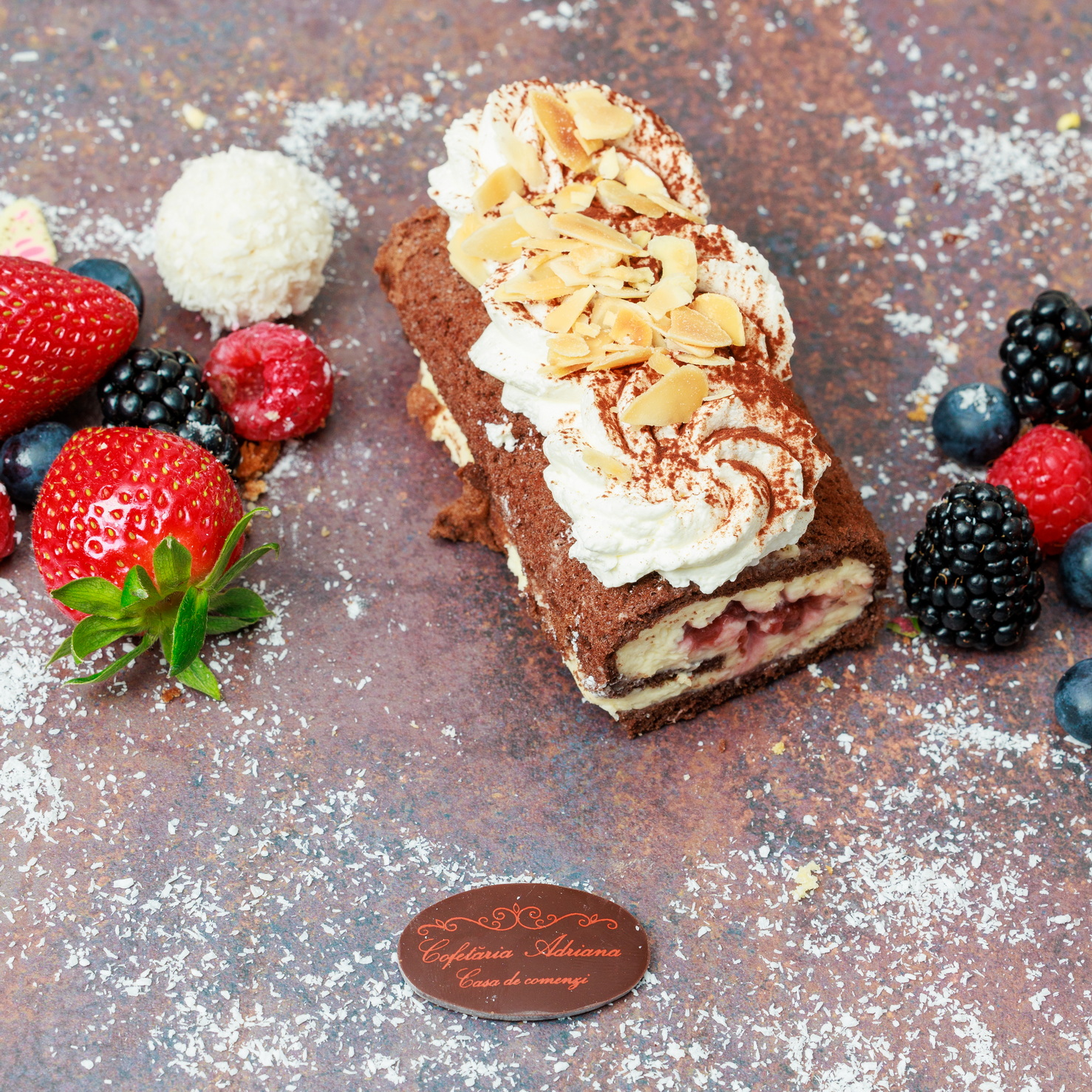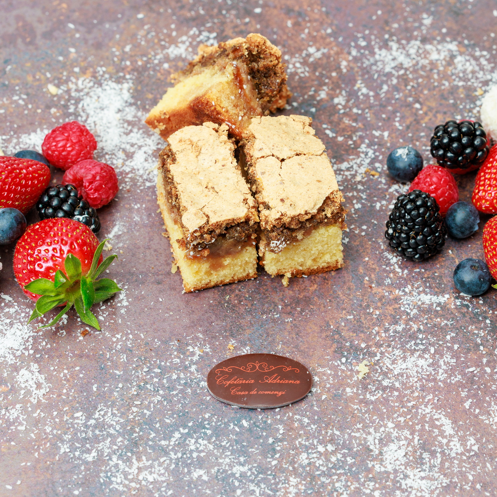 - oua, zahar, faina, frisca lichida, unt, mascarpone, razatura lamaie, zeama lamaie, gelatina, fulgi de cocos, gem de caise (E160)