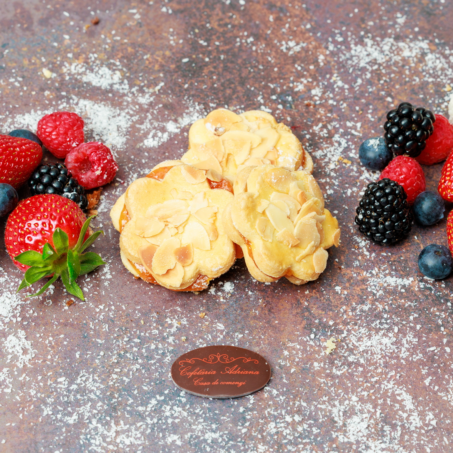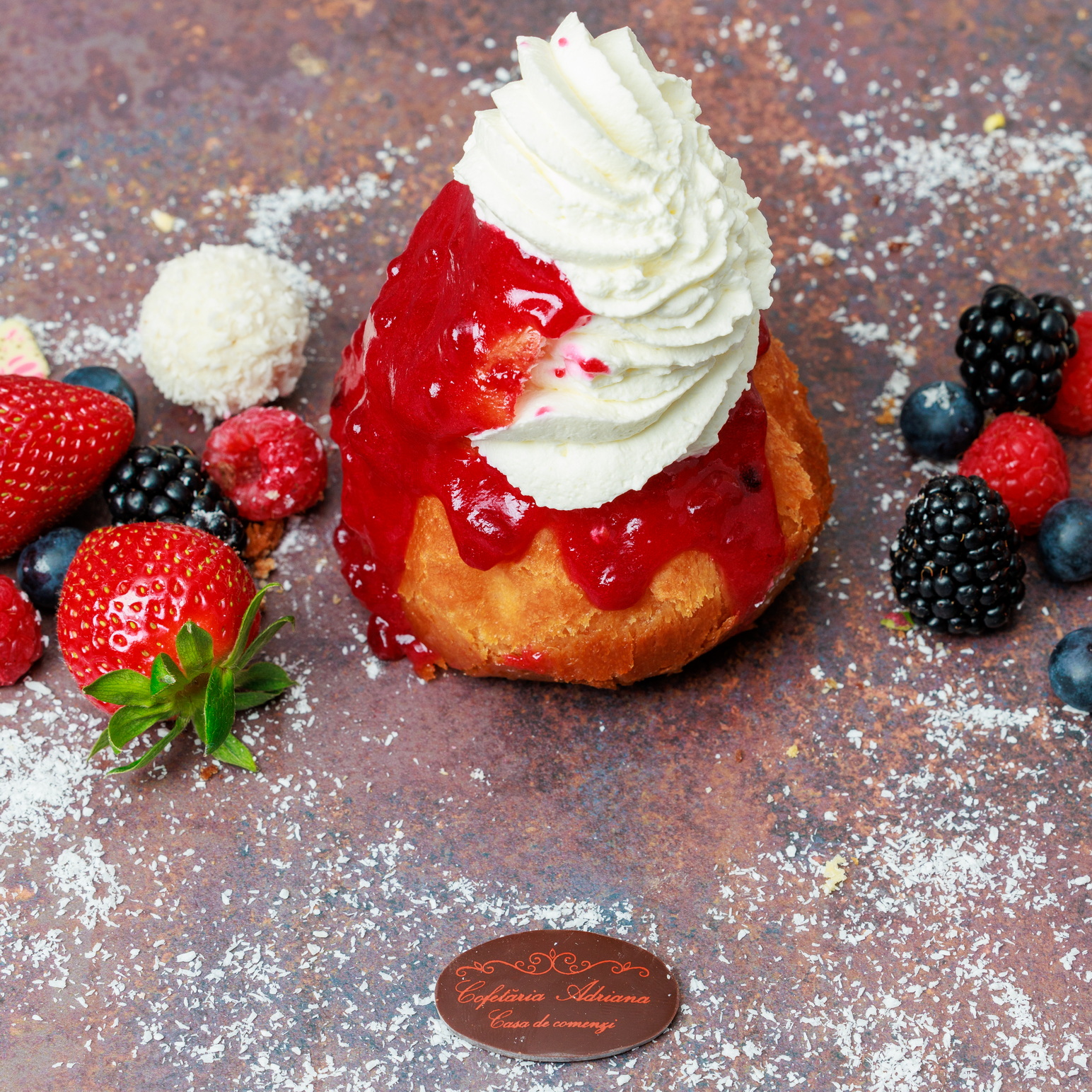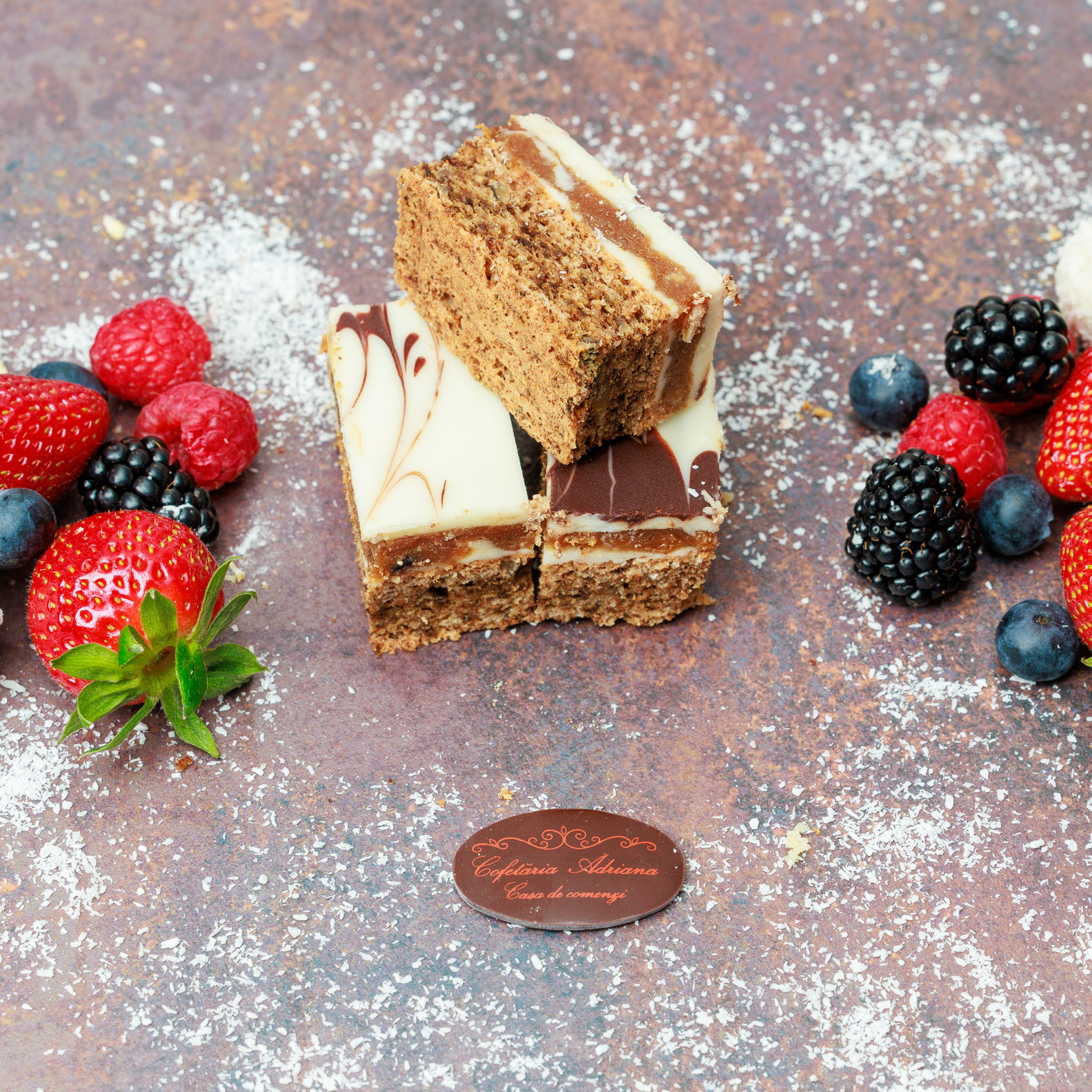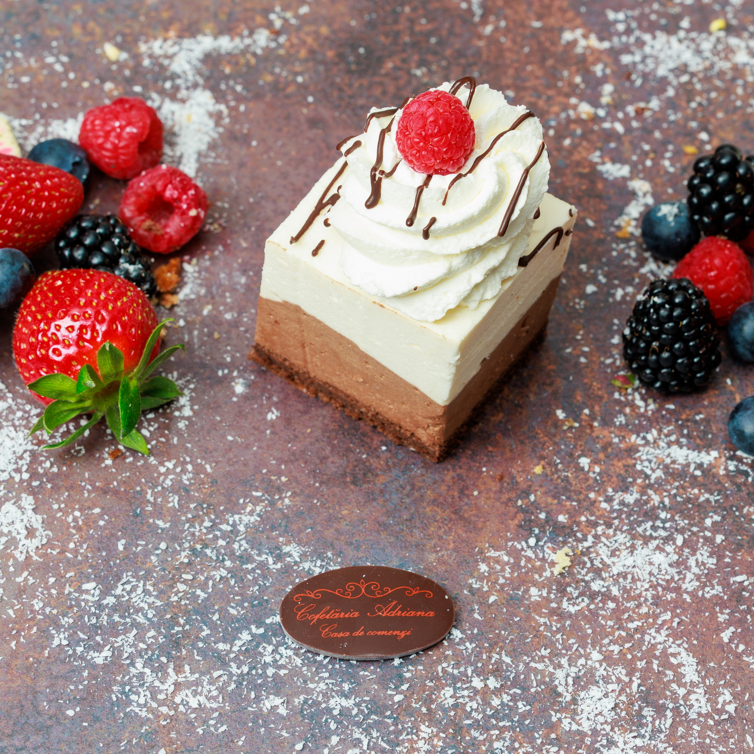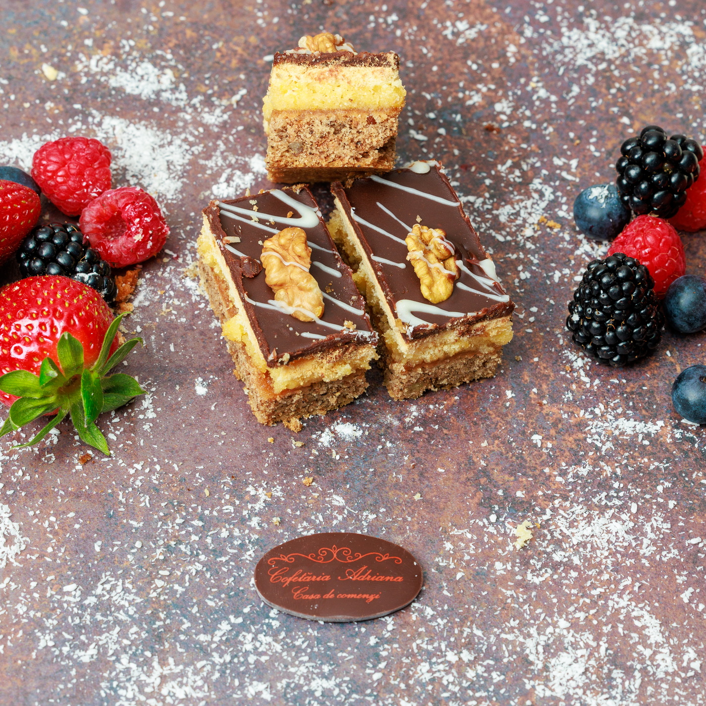 - oua, zahar, faina, frisca lichida, unt, mascarpone, razatura lamaie, zeama lamaie, gelatina, fulgi de cocos, gem de caise (E160)